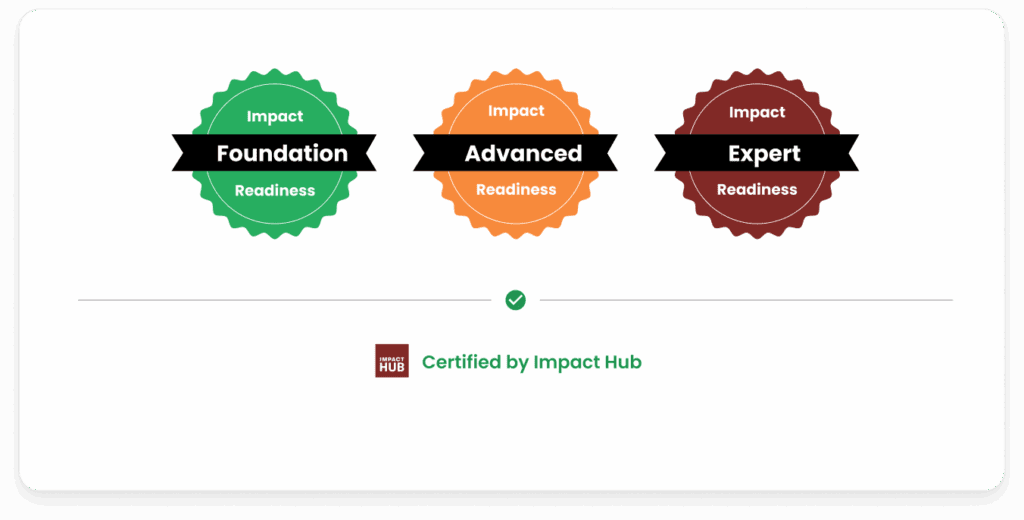 Get our Impact Readiness certification badge (with a digital verification button and certificate issuance ID) to turn sustainability into growth and market recognition.